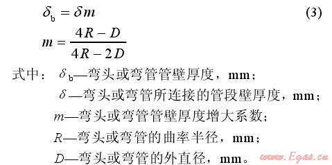 彎頭和彎管的管壁厚度根據(jù)《輸氣管道工程設(shè)計(jì)規(guī)范》(GB50251—2003)中公式(3)計(jì)算: