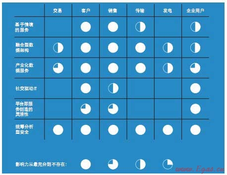 這些趨勢將對公用事業(yè)行業(yè)的各個方面造成怎樣程度的影響,下圖做出了簡要展示[2]: