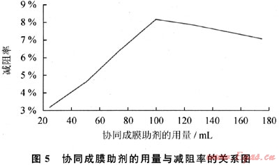 3.1.3協(xié)同成膜助劑的用量與減阻率的關(guān)系