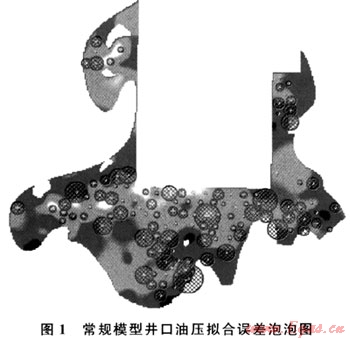 歷史擬合是對地質模型參數(shù)場的修正,也是對地質再認識的過程。常規(guī)模型歷史擬合調參前井口油壓擬合較好的井有24口,占所有氣井的比例為18.2%,且多數(shù)井模型計算壓力較實際壓力偏高;考慮阻流帶的模型壓力擬合較好的井約有72口,所占比例達到54.5%,多數(shù)井計算壓力與實際壓力更加接近,空間擬合誤差對比圖見圖1、2。此外,阻流帶的引入還克服了歷史擬合參數(shù)調整有時范圍較大、不合理的弊端。Y42-2井試井解釋滲透率為0.4mD,表皮系數(shù)為-5.8,邊界面積1.71km2。常規(guī)模型需要將滲透率減小,油壓才能基本擬合上,且曲線變化趨勢仍然與實際存在較大偏差,顯然這種修改是不符合實際的。引入阻流帶以后,將滲透率減小為原來的50%,油壓迅速擬合到實際水平,壓力變化趨勢與實際相符(圖3),這也從另一方面證實了阻流帶的存在。由此可見,考慮阻流帶之后歷史擬合工作變得更加容易,部分井甚至不需要調參即可完成擬合,進一步證實了阻流帶模型的可靠性。值得注意的是:并不是所以井之間都存在阻流帶,還應結合井間干擾分析成果,對部分井間連通區(qū)域進行修改。通過反復修改參數(shù)場,對每口井進行了壓力和產(chǎn)水的擬合,得到模型最終計算儲量710.9×108m3,與地質儲量719.21×108m3相差不大,誤差在5%以內,認為修正后的模型能夠基本代表氣藏實際[8]。