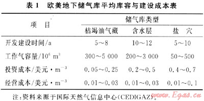 不同國家或同一國家不同地區(qū)的儲氣庫成本也有區(qū)別。最新數(shù)據(jù)表明,對于枯竭油氣藏儲氣庫,美國的單位投資成本為0.36歐元/m3,英國為0.52歐元/m3;鹽穴儲氣庫,美國的單位投資成本為0.50歐元/m3,英國為0.56~1.00歐元/m3。