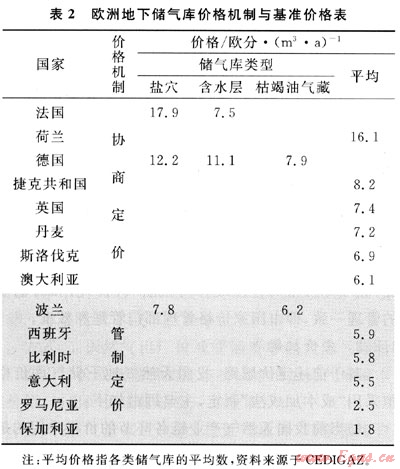 1) 天然氣工業(yè)放松管制后,北美和歐洲的天然氣地下儲氣庫價格機制較為靈活,現(xiàn)在主要有管制定價、協(xié)商定價和市場化價格三種方式,但儲氣庫成本仍是決定價格水平的主要因素。