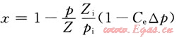 對于定容封閉的干氣氣藏,氣藏將不會產水和有水體侵入,即We=0、Wp=0、Wc=0,代入式(2)整理后即可得到熟悉的定容封閉干氣氣藏物質平衡方程: