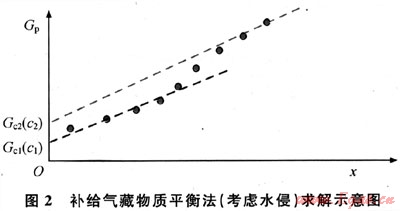 當G小于原始地質儲量時,說明氣藏的補給量不大,補給氣量并未被采出,對于各個階段的動態(tài)儲量和補給氣量,可以利用重復線性回歸法求得不同階段的Gc(圖2),圖2中