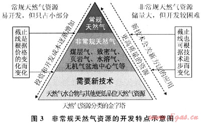 非常規(guī)天然氣資源的開(kāi)發(fā)特點(diǎn)如圖3所示。