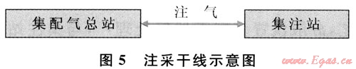 注采干線是由集配氣總站至各集注站間的輸氣干線(圖5)。注氣時(shí),氣源來氣在集配氣總站根據(jù)集注站注氣能力進(jìn)行分配和計(jì)量,通過注采干線進(jìn)入集注站;采氣時(shí),各集注站來凈化氣通過注采干線輸往集配氣總站匯集,經(jīng)外輸管線統(tǒng)一外輸。注采干線采用注采合一工藝,滿足雙向輸送。
