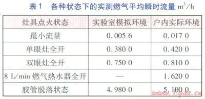 結(jié)合燃具的額定熱負(fù)荷來估算耗氣量、實(shí)驗(yàn)室模擬環(huán)境試驗(yàn)及居民戶內(nèi)實(shí)際環(huán)境試驗(yàn)的方法對燃?xì)猱惓A髁繀^(qū)間進(jìn)行劃分[2]