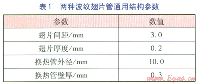 波紋翅片管換熱器具有結(jié)構(gòu)簡單、加工容易、適應(yīng)性強等優(yōu)點,廣泛應(yīng)用于動力、化工、石油、航空航天、空調(diào)及制冷工程等領(lǐng)域。因此對波紋翅片管換熱器的結(jié)構(gòu)進(jìn)行優(yōu)化設(shè)計有著十分重要的意義[1]。
