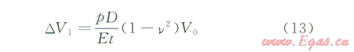 實踐中,對于式(10),由于徑向為管道壁厚方向,對于大口徑薄壁管,擘厚變化引起的管道體積變化較小,以規(guī)格為l219×22mm規(guī)格的管道為例,經(jīng)測算,僅為DVl的5%,若考慮空氣、水的壓縮性,該比例還將大大降低。因此,本文將該壁厚變化引起的體積變化忽略,得到DVl表達式為: