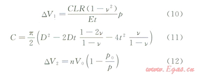 于是,鋼管尚未達到屈服前,試壓時壓力與進水量的關(guān)系式為: