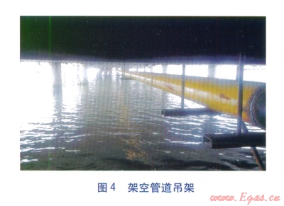 鋼管架空敷設優(yōu)勢是緊貼橋身下面,不容易受到海水沖刷和腐蝕,但鋼管吊裝、固定施工難度大。