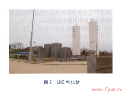 在長輸管道通氣之前,LNG氣化站一直是海陽旅游度假區(qū)的主要氣源。該氣化站是我公司于2005年作為海陽市招商引資項目投資建設的(見圖2)。主要設備有兩臺l00m3立式LNG儲罐,一臺2000m3/h空溫式氣化器,一臺2000m3/h水浴式氣化器,一臺200m3/h卸車增壓器,一臺400m3/h的BOG增壓器。日供氣量約10×104m3/d。將LNG氣化站作為氣源三,其出口壓力為0.27MPa,出口管道規(guī)格為SDRll PE80 NOD 250mm,距離火炬調(diào)壓計量柜約7km,與主氣源一、二配合完全可以滿足火炬高峰用氣量。