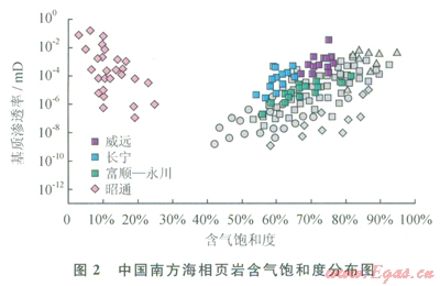 1.1 中國南方海相頁巖與美國頁巖含水飽和度特征