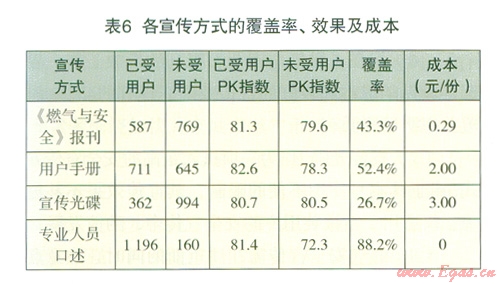 (6)加強《燃氣與安全》報刊的發(fā)放工作,根據(jù)其較低的成本和較好的宣傳效果,現(xiàn)有的43.3%的覆蓋率明顯偏低。