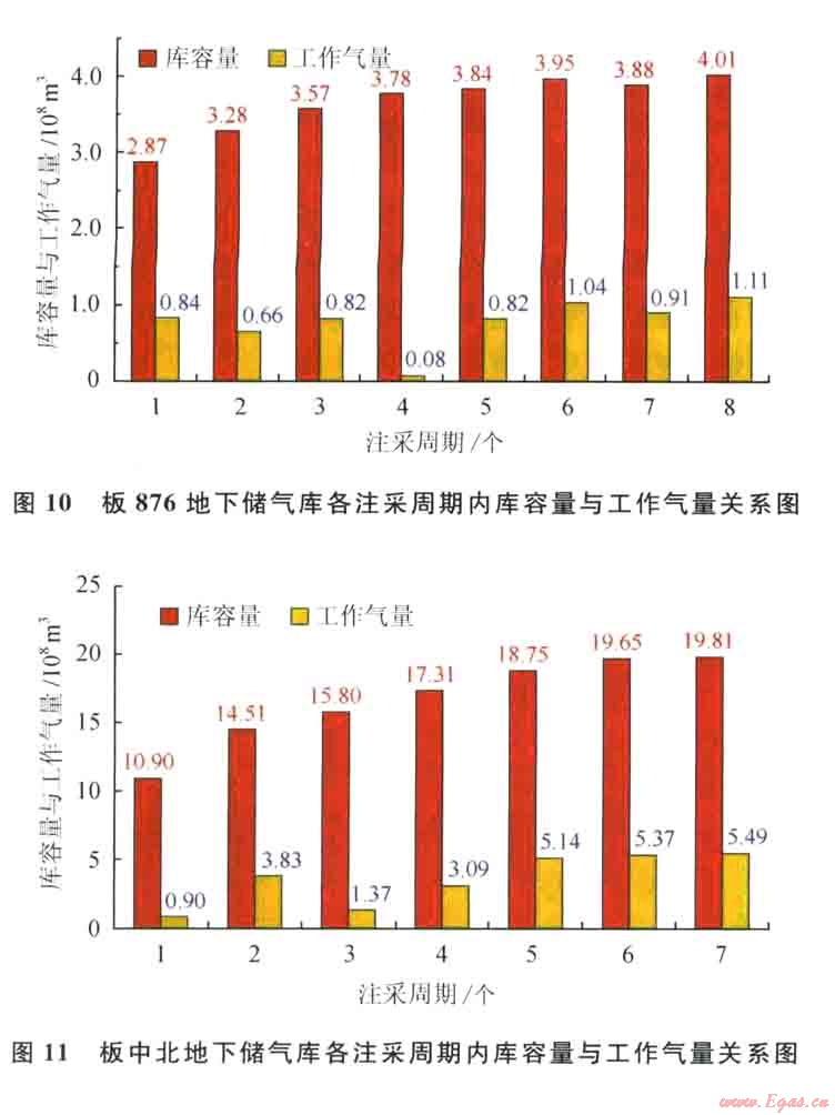 表1 板876地下儲氣庫不同注采周期庫容量的變化情況表