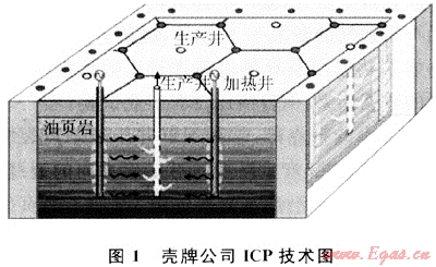 目前主要利用傳導加熱方式加熱頁巖層的技術主要有殼牌石油公司的地下轉化工藝技術(ICP)、美孚石油公司的ElectrofracTM技術和IEP公司的GFC技術。