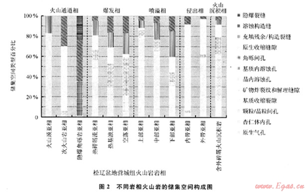 筆者基于前人的研究基礎(chǔ),統(tǒng)計(jì)了松遼盆地營城組火山巖中不同孔縫的面孔率,得出了16種巖性12種亞相的主要儲(chǔ)集空間類型,討論了原??紫逗痛紊紫兜某梢颍瑢?duì)火山巖氣藏的勘探開發(fā)有一定的幫助。