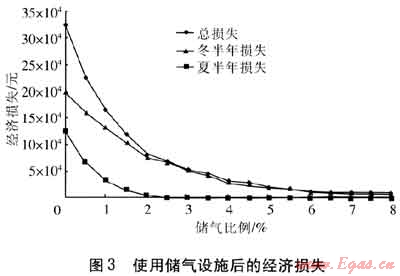 使用儲氣設施后的燃氣負荷預測誤差造成的經(jīng)濟損失見圖3。