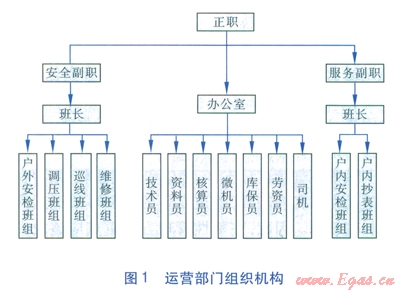 各崗位、工種的職責(zé)確定,能夠最大限度地實(shí)現(xiàn)勞動用工的科學(xué)配置,有效地防止因職務(wù)重疊而發(fā)生的工作扯皮現(xiàn)象,提高工作質(zhì)量,同時(shí)也是內(nèi)業(yè)資料形成的基礎(chǔ)。確定工作職責(zé)的前提是要以公司管理范圍、管理目標(biāo)及行業(yè)標(biāo)準(zhǔn)、法規(guī)等劃分崗位,并作為制定本部門各項(xiàng)工作職責(zé)的依據(jù)。燃?xì)膺\(yùn)營部門的主要工作內(nèi)容就是采取主動查找燃?xì)庠O(shè)備設(shè)施存在各類隱患的方式來保障平穩(wěn)供氣,因此,運(yùn)營部門工作職責(zé)可確定為4項(xiàng):