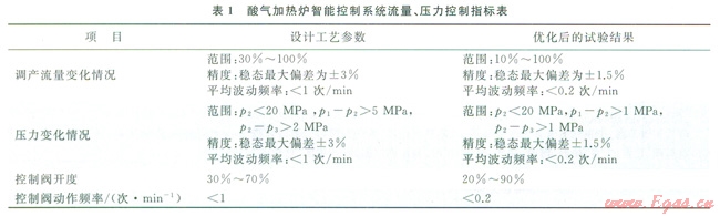 酸氣加熱爐智能控制系統(tǒng)流量、壓力控制指標(biāo)如表1所示。