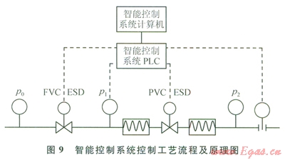 以計(jì)算機(jī)和PLC為核心組成智能控制系統(tǒng)[5-6],完成流量、壓力等的自動(dòng)控制(圖9)。