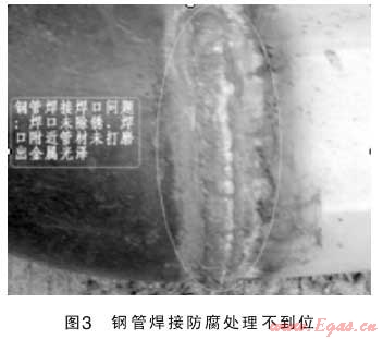 1)由于鋼管施工不遵守操作規(guī)程,在管道防腐或下管時已產(chǎn)生防腐層損壞,外防腐層起不到應(yīng)有的保護作用,致使管道產(chǎn)生外腐蝕穿孔;