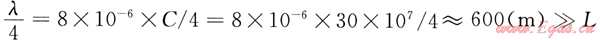 按雷電流的等效頻率10kHz計算,其1/4波長為
