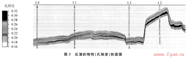 由于L氣田井?dāng)?shù)目相對(duì)較少,為了提高反演結(jié)果在空間上的可靠性,算法上選擇了將疊前AVA同步反演結(jié)果作為趨勢(shì)約束的基于序貫高斯協(xié)模擬技術(shù)的隨機(jī)反演方法。在此,地震數(shù)據(jù)和井?dāng)?shù)據(jù)一樣作為硬數(shù)據(jù)得到重視,反演結(jié)果同時(shí)符合測(cè)井、地震和輸入的數(shù)據(jù),并且受建立的地質(zhì)模型的約束。