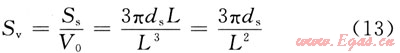 由此,單位體積顆粒填充床的總表面(即比面積)為: