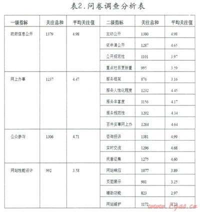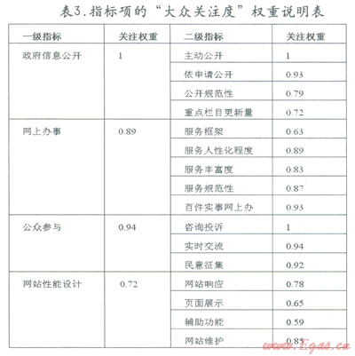 2)社會(huì)各階層很少注意的項(xiàng)目,例如監(jiān)督管理、在線受理、專題欄目等,雖然也十分重要,但其權(quán)重應(yīng)該與其他重點(diǎn)指標(biāo)有差距,才能體現(xiàn)評(píng)估的公正性;