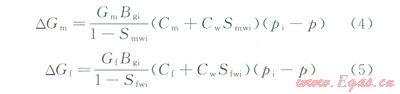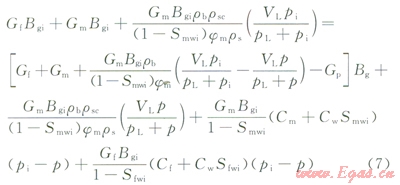 根據(jù)頁巖氣藏地下儲集空間體積平衡原理,基質系統(tǒng)原始游離氣體積+裂縫系統(tǒng)原始游離氣體積+原始吸附氣吸附相體積=剩余游離氣體積+剩余吸附相體積+基質體系巖石與束縛水膨脹體積+裂縫體系巖石與束縛水膨脹體積,其中剩余游離氣體積南剩余的原始游離氣及剩余的解吸氣組成,即