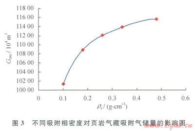 3)筆者探索性地研究了吸附相密度對頁巖氣地質儲量的影響。隨吸附相密度增大,頁巖氣藏吸附氣儲量增大,而總地質儲量略有減小。對于儲層溫度、壓力、孔隙半徑與吸附相密度的關系及最終對儲量計算的影響還有待進一步研究。