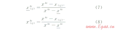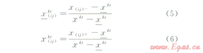 x(ij)+、x(ij)-分別為7個指標(biāo)區(qū)間變化范圍的最大、最小值;