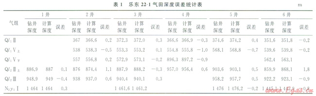 對(duì)該區(qū)速度譜有了清晰的認(rèn)識(shí)后,分兩部分進(jìn)行速度分析。在“模糊區(qū)”外主要解釋了高分辨率二維地震速度譜,在“模糊區(qū)”內(nèi)主要用1993年常規(guī)二維地震測(cè)線的道集和部分l996年高分辨率二維地震資料進(jìn)行交互速度分析拾取。速度體的建立[6]要經(jīng)過速度解釋、數(shù)字化輸入等多個(gè)環(huán)節(jié),難免會(huì)出現(xiàn)一些差錯(cuò),為了解決這一問題,使建立的速度體更加準(zhǔn)確可靠,采用“INDEPTH”軟件的速度監(jiān)控功能對(duì)速度資料進(jìn)行了質(zhì)量控制。較好地從點(diǎn)、線、面上找出野值或不合規(guī)律的值,經(jīng)質(zhì)量控制后,消除這些野值和奇異點(diǎn),使地震速度更加準(zhǔn)確可靠,對(duì)比各井VSP速度與井旁地震速度譜速度發(fā)現(xiàn),兩種速度非常接近,雖然仍有一定的誤差,但已完全可以滿足精度要求。把經(jīng)質(zhì)量控制后的速度數(shù)據(jù)進(jìn)行格式轉(zhuǎn)換,用“EARTHVISION”軟件進(jìn)行三維網(wǎng)格化(網(wǎng)格間距為250m×250m×20ms),再用6口井的VSP速度進(jìn)行校正,獲得了準(zhǔn)確可靠的地震速度體[10]。將該速度體轉(zhuǎn)換的深度構(gòu)造圖與井點(diǎn)實(shí)鉆進(jìn)行比較,其絕對(duì)誤差最大為l.8m,精度較高(表1)。