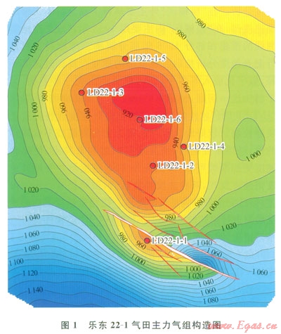 根據(jù)l993年采集的常規(guī)二維地震資料,確定樂東22-l構(gòu)造預(yù)探井鉆探基本原則為:①地震資料可靠度較高的位置;②有自圈的位置;③縱向可能多層且能控制一定儲(chǔ)量的位置?;诖耍谌﹂]的東南處鉆探I井。通過鉆探,在第四系樂東組二段、三段和新近系鶯歌海組一段共發(fā)現(xiàn)6套氣藏,測(cè)試產(chǎn)能高(無阻流量介于23~238m3/d),氣體組分差異大(非烴含量介于15.4%~85.7%),證實(shí)了該區(qū)的含氣性。但要將其經(jīng)濟(jì)開發(fā)還需繼續(xù)擴(kuò)大儲(chǔ)量規(guī)模。