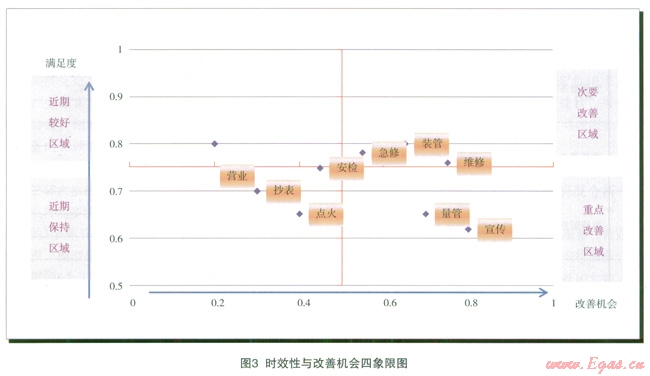 從穩(wěn)定性、時(shí)效性和便捷性與服務(wù)改善機(jī)會(huì)的象限圖,導(dǎo)出客戶關(guān)注的需求點(diǎn),識(shí)別…近期服務(wù)的重點(diǎn)改善和次要改善機(jī)會(huì)兩方面內(nèi)容,采取相應(yīng)的改進(jìn)措施(見表2和表3)。