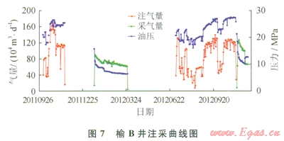 榆林南注采試驗(yàn)井榆A和榆B井注氣過程中,井筒壓力損失分析見表7所示,計(jì)算壓力損失與實(shí)測的誤差小于2%?,F(xiàn)場試驗(yàn)表明,室內(nèi)節(jié)點(diǎn)分析軟件模擬計(jì)算結(jié)果符合氣井實(shí)際運(yùn)行工況。