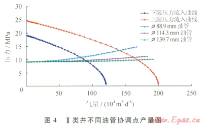 綜合考慮注采井協(xié)調(diào)點(diǎn)產(chǎn)量、沖蝕流量、攜液生產(chǎn)能力等因素。按照儲(chǔ)氣庫上限壓力(指地層壓力)24.6MPa、下限壓力l9.1MPa兩種情況,井口壓力6.4MPa,計(jì)算不同油管的最大合理產(chǎn)量。
