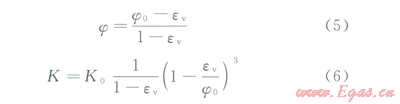 儲層的孔隙壓力和應力相互耦合,儲層孔隙壓力和有效應力的變化對孔隙度和滲透率產(chǎn)生影響。本計算模型中,孔隙度和滲透率在計算過程中動態(tài)變化,變化方式如下所示[16]: