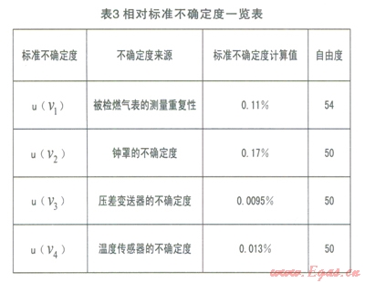 4.4 相對(duì)標(biāo)準(zhǔn)不確定度一覽表(見表3)