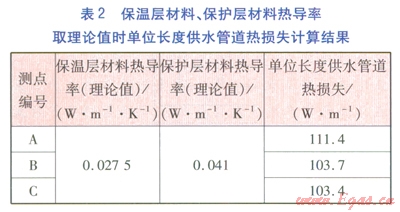 ①參與計(jì)算單位長(zhǎng)度供熱管道熱損失的保溫層材料、保護(hù)層材料熱導(dǎo)率,對(duì)計(jì)算結(jié)果影響較大。應(yīng)根據(jù)實(shí)測(cè)供水溫度對(duì)保溫層材料、保護(hù)層材料熱導(dǎo)率進(jìn)行求解,以計(jì)算準(zhǔn)確的熱損失。
