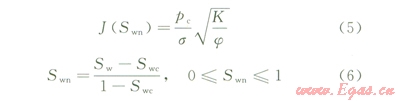 J函數(shù)法是以壓汞數(shù)據(jù)為基礎(chǔ),針對巖石孔喉特征進(jìn)行研究的方法。因?yàn)閷?shí)驗(yàn)室測定的小尺寸巖樣的毛細(xì)管壓力曲線只能代表氣層中的一個點(diǎn),而要得到能夠表征整個氣層的毛細(xì)管壓力曲線,就必須將獲得的所有毛細(xì)管壓力資料綜合平均。為此,Leverett提出了“J”函數(shù)的概念和汁算公式: