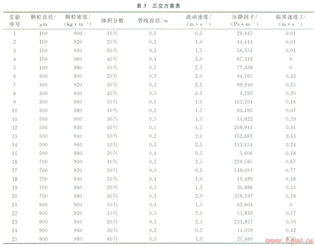 此外,經(jīng)過對(duì)比可知,普遍常識(shí)所認(rèn)為的對(duì)流動(dòng)狀態(tài)有較大影響的固相顆粒體積分?jǐn)?shù)卻是對(duì)“臨界速度2”影響最小的參數(shù),分析原因,筆者認(rèn)為固相顆粒體積分?jǐn)?shù)在較低濃度時(shí)(小于35%),對(duì)“臨界速度2”影響不大,而只有在較高濃度,尤其是濃度接近最大填充率的時(shí)候,才會(huì)對(duì)“臨界速度2”有顯著影響。