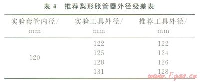 3)結(jié)合測試結(jié)果,推薦了一組合理的梨形脹管器外徑級差。