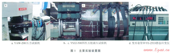 整形實驗設(shè)備包括YAW-200壓力試驗機、YE-2533靜態(tài)應(yīng)變儀、YS32-500型的四方柱萬能液壓試驗機、上下夾具、帶傳感器的配合接頭。其中壓力試驗機用于制備橢圓形套管;靜態(tài)應(yīng)變儀用于測餐梨形脹管器整形過程中配合接頭上產(chǎn)生的壓應(yīng)變;上下夾具分別用于固定脹管器和變形套管;四方柱萬能液壓試驗機用于施加整形力。故根據(jù)配合接頭上的壓應(yīng)變,并結(jié)合胡克定律和配合接頭的幾何尺寸可以求得梨形脹管器整形時所需的整形力Fp即