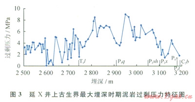 一般來說浮力和水動力是油氣二次運(yùn)移的主要動力,在常規(guī)油氣二次運(yùn)移過程中浮力和水動力作用較強(qiáng)。但在鄂爾多斯盆地上古生界由于儲層成巖早期壓實(shí)作用和膠結(jié)作用強(qiáng)烈,因而在造成儲層致密化的同時(shí),也導(dǎo)致儲層中的自由水大為減少,從而難以產(chǎn)生較強(qiáng)的浮力和水動力[28]。另一方面,流體南高勢區(qū)向低勢區(qū)運(yùn)移的原理只適用于連通的水力系統(tǒng),而不適用于多個(gè)封隔體之間。泥巖壓實(shí)研究表明,盆地上古生界地層在三疊紀(jì)末 白堊紀(jì)發(fā)育“非均衡壓實(shí)” [16-17,21,24,26],該區(qū)最大埋深時(shí)期(白堊紀(jì))泥巖過剩壓力幅度介于0~10MPa,過剩壓力峰值出現(xiàn)在三疊系劉家溝組—上石盒子組(圖3),在壓力封存箱的上下、側(cè)向高壓泥巖阻隔之間,很難出現(xiàn)區(qū)域運(yùn)移??梢姡鯛柖嗨古璧厣瞎派缛狈μ烊粴獯笠?guī)模、長距離運(yùn)移的動力條件。