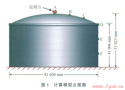 筆者應(yīng)用流固耦合AKE算法和LS-DYNA有限元程序?qū)佑|爆炸作用下特大型LNG儲罐的動力響應(yīng)進(jìn)行了數(shù)值模擬分析,根據(jù)前期工作分析,選取900kg TNT當(dāng)量炸藥作為分析載荷。計(jì)算結(jié)果表明: