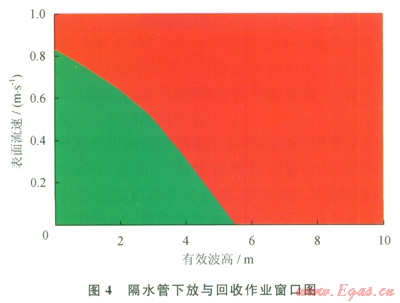 隔水管的下放/回收作業(yè)窗口如圖4所示(具體數(shù)據(jù)略)。圖4中綠色部分為允許作業(yè)區(qū)域,紅色區(qū)域為不允許在該配置下進行下放/回收的環(huán)境條件。