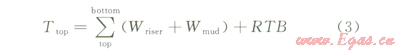 式中Wriser為隔水管濕重;Wmud為鉆井液濕重;RTB為底部殘余張力,一般取至少225kN(不包含隔水管底部總成的濕重)[11]。