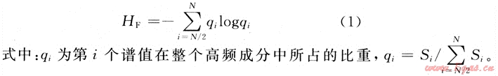 設(shè)Si為信號由時域變換到頻域所對應(yīng)的功率譜,那么S={S1,S2,…,SN)可看作是對原始信號的一種劃分,選定{SN/2,SN/2+1,…,SN)作為高頻成分,根據(jù)文獻(xiàn)[5]對信息熵的解釋,定義高頻譜熵HF為: